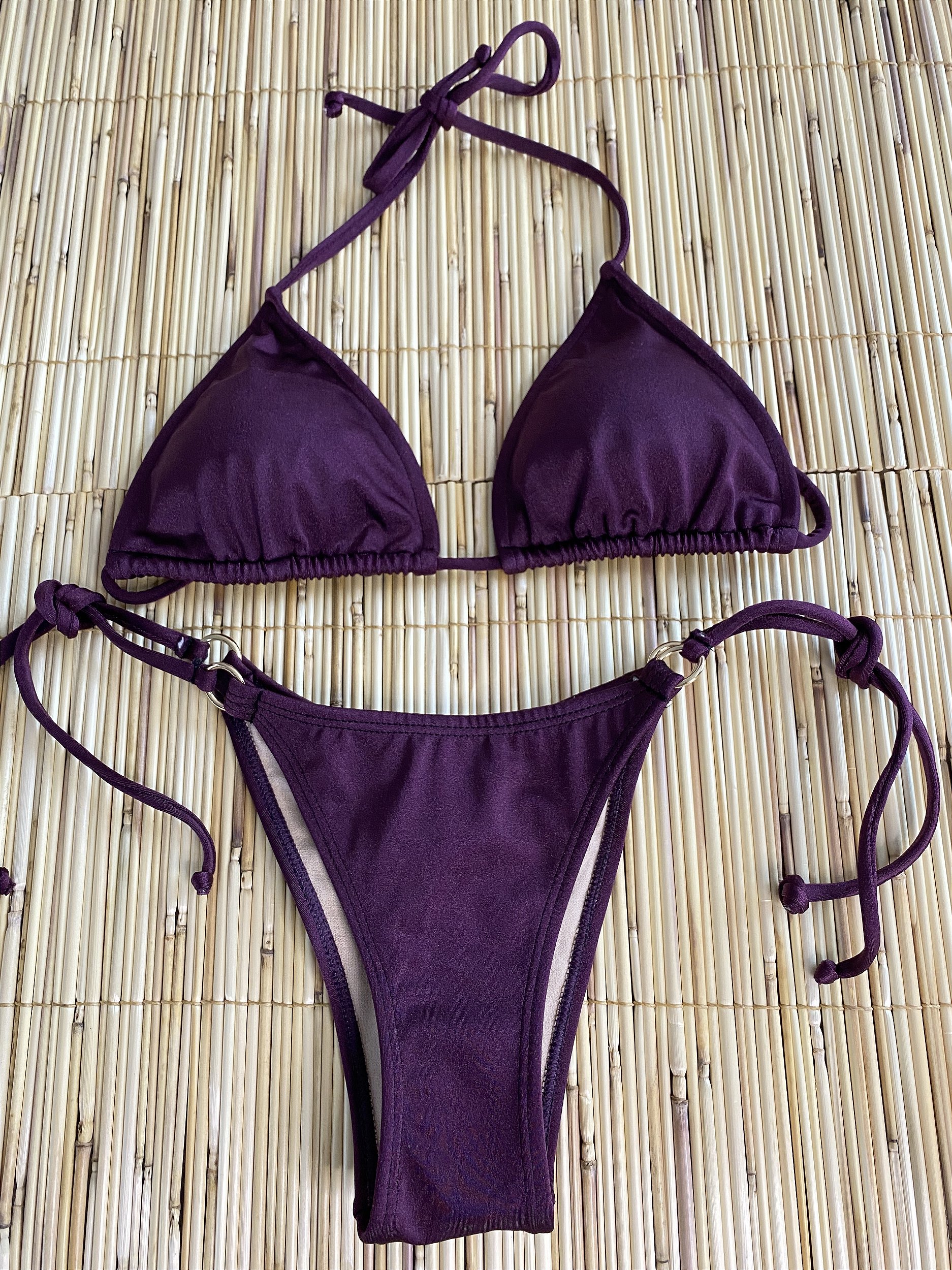 Biquíni modelo calcinha lacinho com sutiã cortininha com bojo removível . Na lycra cirrê beterraba . Com ferragens douradas . Calcinha empina bumbum